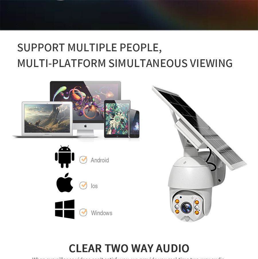 Kamera Keamanan Rumah Tenaga Surya ini dengan kinerja tahan cuaca IP66 yang luar biasa, kamera surya wifi nirkabel ini dapat mencegah air merembes ke dalam kamera dan menahan kisaran suhu dari -20 derajat hingga 50 derajat, yang mampu bertahan dalam kondisi yang lebih sulit dan ekstrem seperti angin, hujan, salju. Berikan keamanan rumah Anda terus menerus selama 24 jam per hari pengawasan video